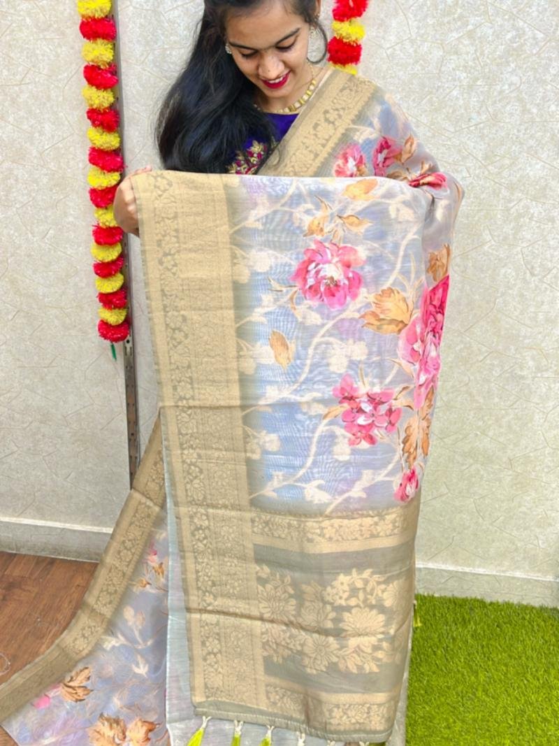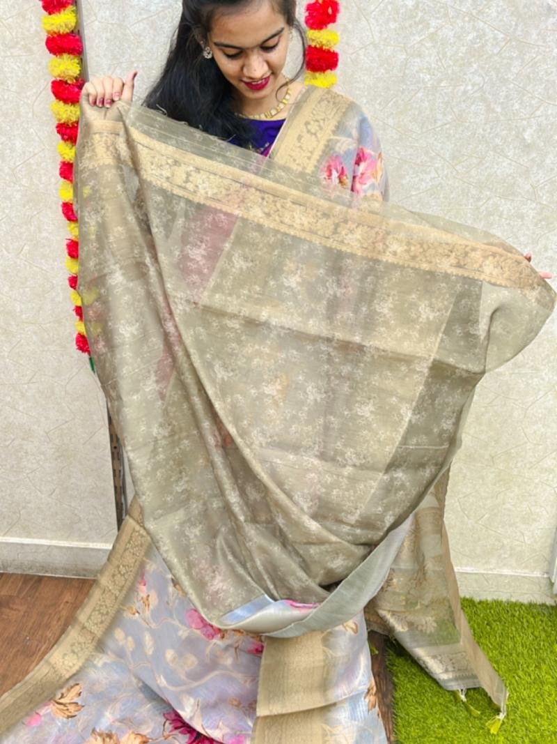 WORK -ZARI WORK ALL OVER THE SAREE &DIGITAL FLORAL PRINT