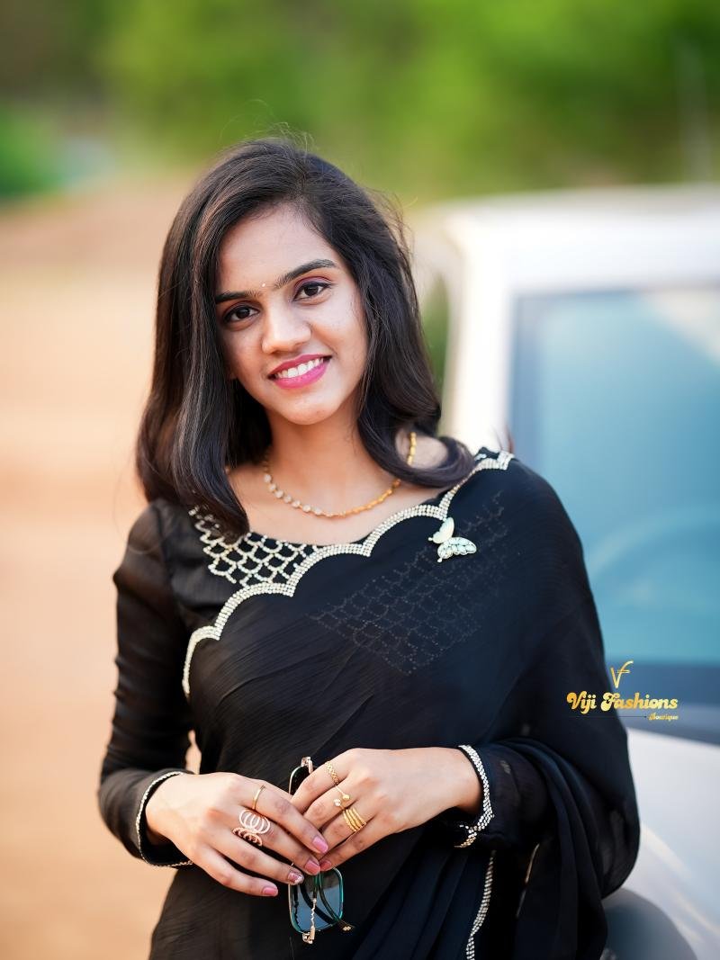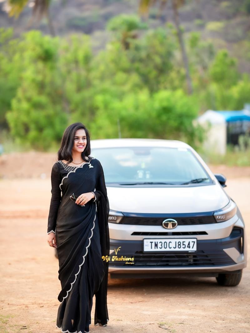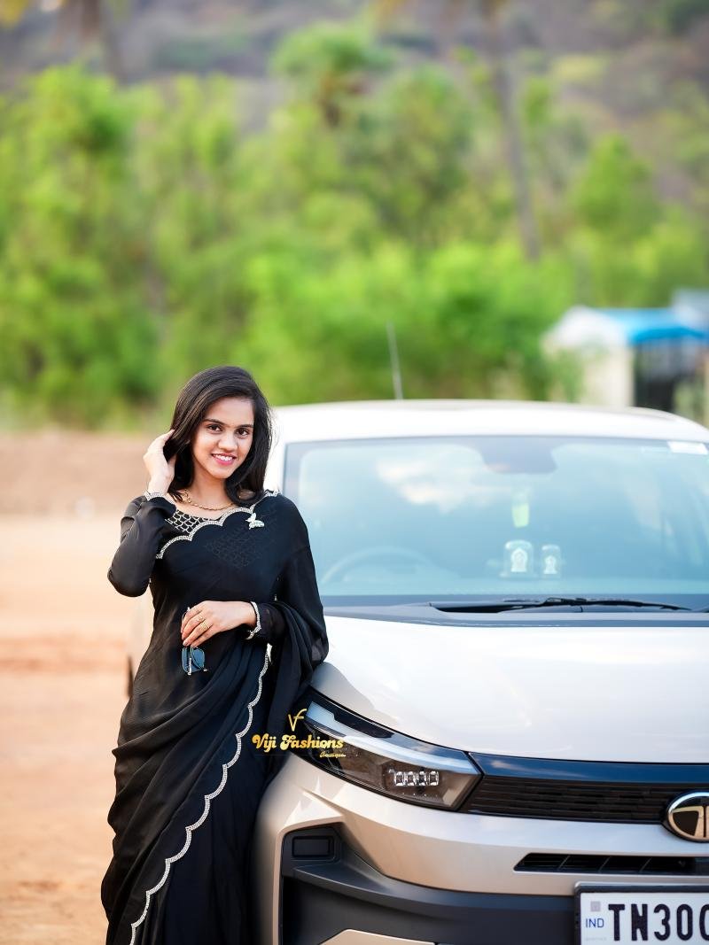A PREMIUM MARBLE SAREE WITH SIDE SCALUP FULL STONE (CRYSTAL STONES)